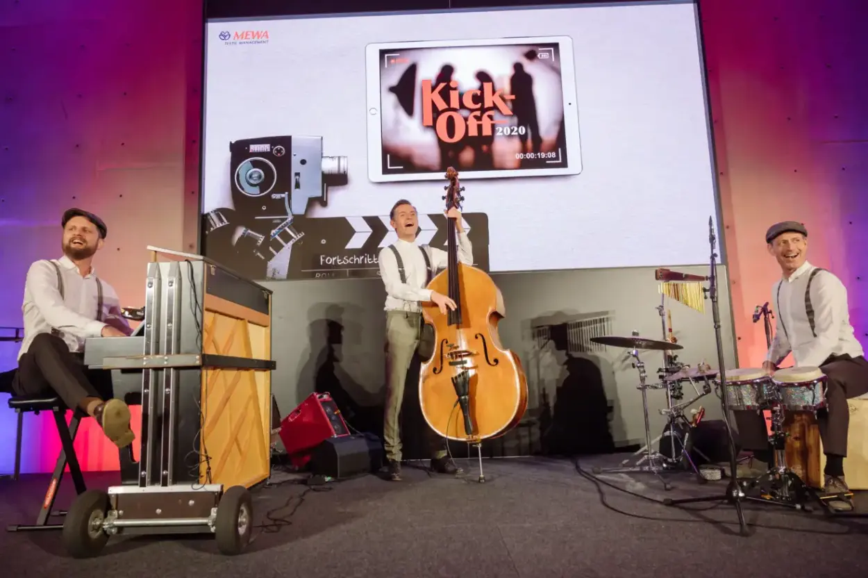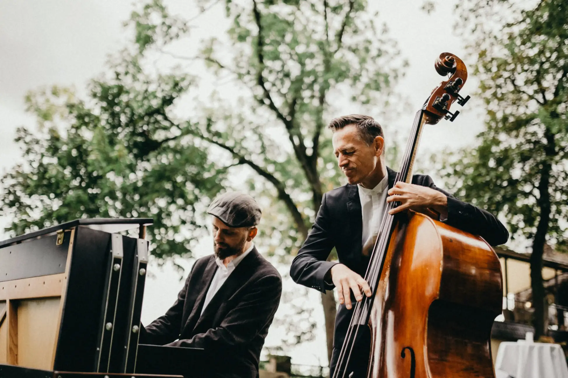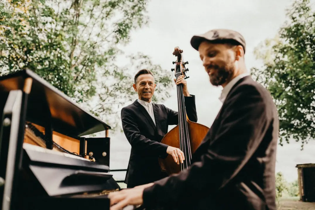 Wir kombinieren dies mit dem Deluxe eines wunderschönen Klaviers auf Rädern. Ganz nach Euren Vorstellungen spielen wir als Duo, Trio oder Quartett, zur Trauung auch mal als Solist am mobilen Klavier auf Rädern. Spontan reagieren wir auf die Atmosphären Eurer Feier, wechseln von vergnügtem Swing zu funky Popsongs oder lassen den dezenten BossaNova zum frivolen französischen Walzer mutieren. Mal dezent, mal offensiv – aber immer aufnerksam für Euch und Eure Gäste. Mal schlängeln wir uns musizierend zwischen Euren Gästen hindurch, mal bringen wir sie zum Tanzen oder erfüllen auf Musikwünsche. Ihr lehnt Euch zurück und genießt die Stimmung.