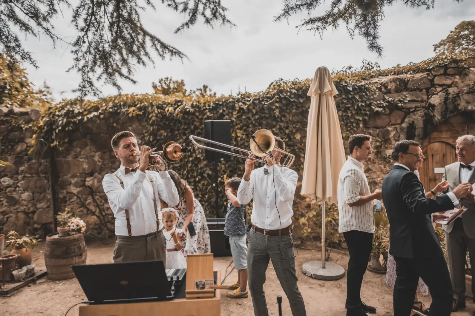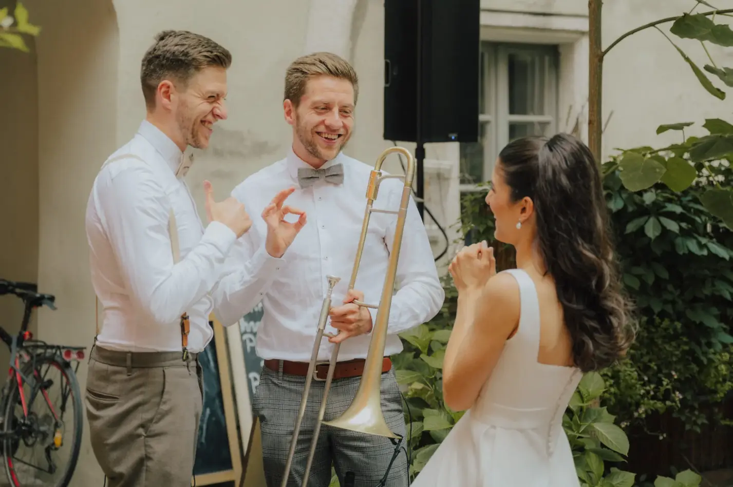 Unser abwechslungsreiches Repertoire bietet die perfekte Mischung für jeden Anlass: Ob entspannte Jazz-Vibes als stilvolle Hintergrundmusik beim Sektempfang von Hochzeiten, moderne funky Grooves zur Auflockerung von Firmenfeiern oder energiegeladene Live-Acts zusammen mit einem DJ, die garantiert die Tanzfläche füllen – unsere Vielseitigkeit verbunden mit unserer mitreißenden Performance macht uns zu einer international gefragten Hochzeitsband und Live-Band für Firmenevents. Lassen Sie uns auch Ihr Event mit unserer Leidenschaft für Musik bereichern und unvergessliche Erinnerungen schaffen.