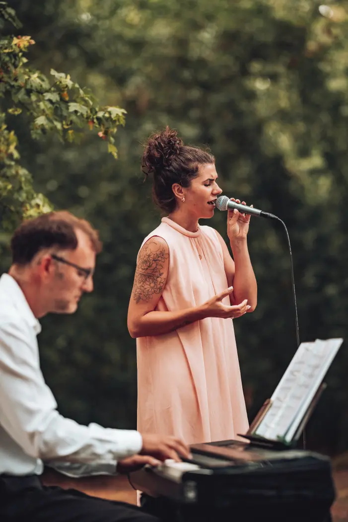Und Du sehnst Dich danach, dass es endlich soweit ist und Ihr „ja“ sagen könnt. Ich bin Leonie Jael, Sängerin & Songschreiberin aus Hannover, studierte Musikerin und seit 2016 hauptberuflich als professionelle Musikerin und Hochzeitssängerin tätig. Mit über 15 Jahren Bühnenerfahrung und einer reichen Anzahl an Auftritten auf Hochzeiten, Firmenveranstaltungen, Events und Konzerten ist es mir möglich, Euch einen unvergesslichen Moment und musikalische Erinnerungen zu zaubern. Mein Anliegen ist es Euch im Vornherein zu helfen und die Planung Eurer Trauung zu unterstützen. Neben den musikalisch-emotionalen Höhepunkten und vielleicht der ein oder anderen Freudenträne, schenke ich Euch mit meiner Musik Augenblicke in denen Ihr Euch zurücklehnen könnt. Durch die enge Zusammenarbeit mit meinen Kundinnen und Kunden weiß ich, wie wichtig die Zeit zum Durchatmen nach all der langen Vorbereitung und Aufregung sein kann. Diesen Moment habt Ihr Euch verdient! Ich arbeite komplett autark (Technik etc. bringe ich alles selbst mit) und Ihr entscheidet welche und wie viele Lieder ich singe. Ich kann aufgrund meiner langjährigen Berufserfahrung auf ein großes Repertoire zurückgreifen. Ihr habt einen besonderen Liedwunsch oder vielleicht sogar ein Lieblingslied? Perfekt! Sehr gerne nehme ich Eure persönlichen Wünsche entgegen. Und da jede Hochzeit individuell ist gibt es bei mir verschiedene Pakete im Angebot. Generell biete ich Solo (Gesang zum Halbplayback) oder Duo (Gesang mit Piano oder Gitarre) für die standesamtliche, kirchliche oder freie Trauung an. Auf Wunsch begleite ich bzw. wir auch den Sektempfang, um für Euch und Eure Gäste die Zeit zu verschönern, während Ihr ggf. noch Fotos machen geht. Ich arbeite professionell und persönlich und würde mich daher sehr freuen, Euch in einem ersten Telefonat oder Video-Call kennenzulernen.